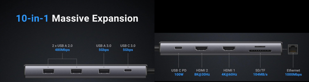今回ご紹介する UGREEN Revodok Pro 210(10-in-1 USB-C ドッキングステーション) は、