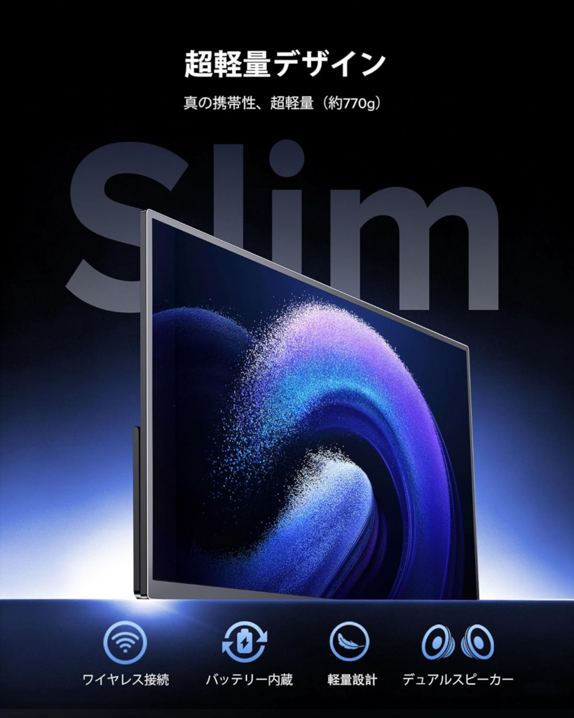 ディスプレー自体が無線でつながる上に、バッテリーも内蔵しているため、ケーブルが全く不要のモバイルディスプレイが発売されました。
